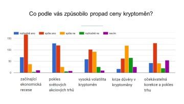 Propad ceny kryptoměn podle českých investorů způsobil především pokles světových akciových trhů následovaný začínající ekonomickou recesí. Jako důvod ale respondenti nevidí krizi důvěry v kryptoměny.