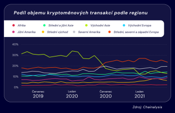 Transakce na blockchainu jsou anonymní. Nicméně podle zájmu o centralizované burzy, jako je Crypto.com či Binance, lze určit, ve kterém regionu to na digitálním poli nejvíc žije. Evropský region jasně dominuje.